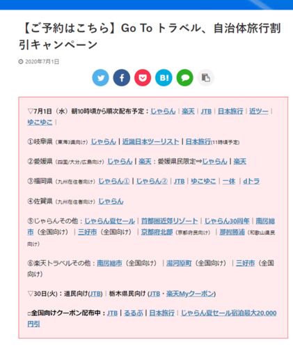 7月1日にクーポンが出るという、メルマガが、過去に泊まった岐阜のお宿から来ました。 で、いつもの旅行クーポン情報サイトに飛ぶと、 travelersnavi.com 東海3県在住者限定で、岐阜県の宿泊施設のクーポンは、 じゃらん 日本旅行 近畿日本ツーリスト から出…