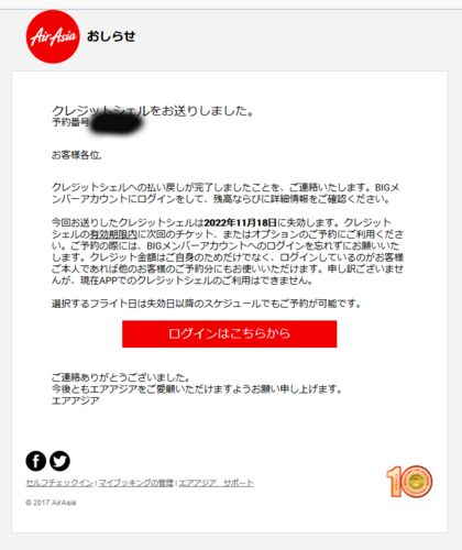 Air Asiaからメールが来ました。 「払い戻し完了」のお知らせ。 と思ったら、クレジットジェル払い戻し完了のお知らせでした(泣) どういうことかというと・・・・・・・ こんな内容です。 え?私は、お金で戻してね。とちゃんとお願いをしたのに、有効期限…