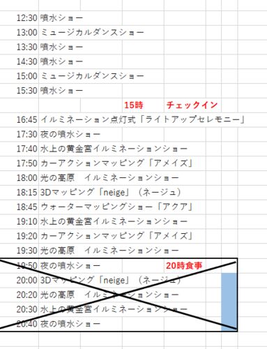 「ラグーナテンボスで遊ぶ 大人の女子会」目次 イルミネーション点灯式 20分 ステライルミネーション。 17時半の噴水ショー 3分 水上の黄金宮 イルミネーションショー 3分半 カーアクションマッピングの「アメイズ」です。17時50分から約8分 光の高原 イルミ…
