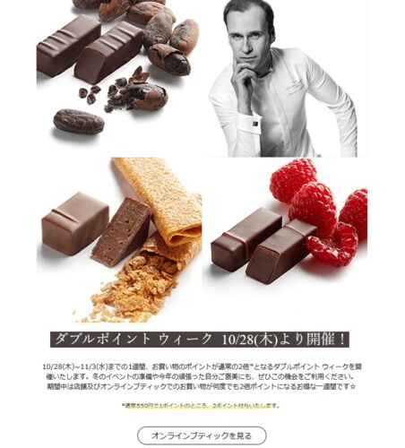 メゾンドショコラからメールが届きました。 前回、入会した「キャレ デ パッショネ」 www.mistysonata.work こちらのポイントが2倍になる「ダブルポイントウィーク」です。 年に2回あるそうです。 これは、買わねば・・・・・・ ※まんまと策にハマっています…
