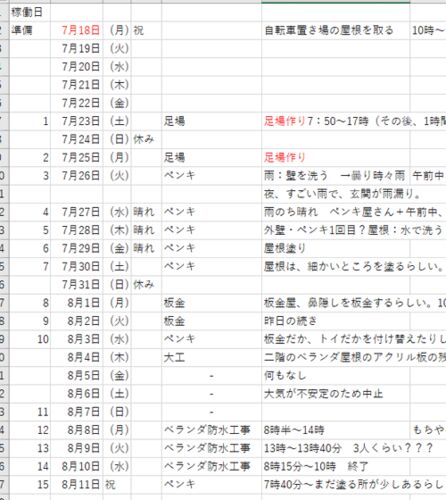 外壁・屋根の塗装、終了しました~~。 こんな感じです。 稼働日で計算すると、15日間ですが、 雨だったり、間が開いたりと、 7月23日(土曜日)から開始して、終了が、8月11日(木曜日)。 約3週間くらいです。 始まった時は、もう嫌だ~~~と 思いました…