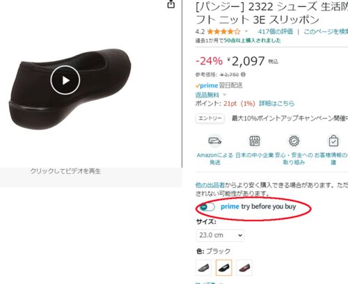 とりあず、母の靴は、一つ買ってみることにしました。 どなたかのブログで、 「アマゾンのお試し履きが出来る(アマゾンプライム会員限定?)」というのを読んで、 それを使ってみます。 とはいえ、返品するの面倒なので、 返品するかも知れないけれど、買う…