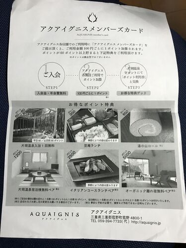 三重県にある「片岡温泉アクアイグニス」 過去2回宿泊し、ポイントカードを作ったので、カードの期間を延長するために、一年に1回日帰りで遊びに行っています。 過去2回の宿泊は、「ふるさと割」とか、「Gotoトラベル」とかを使って、二食付き豪華版のプラン…