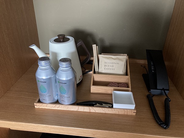 左手前のボトルは、伊藤園の「水」でした~。無料です。