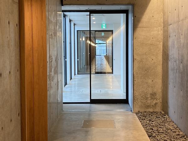 この壁の向こう側に、トイレ、洗面所、お風呂があります。