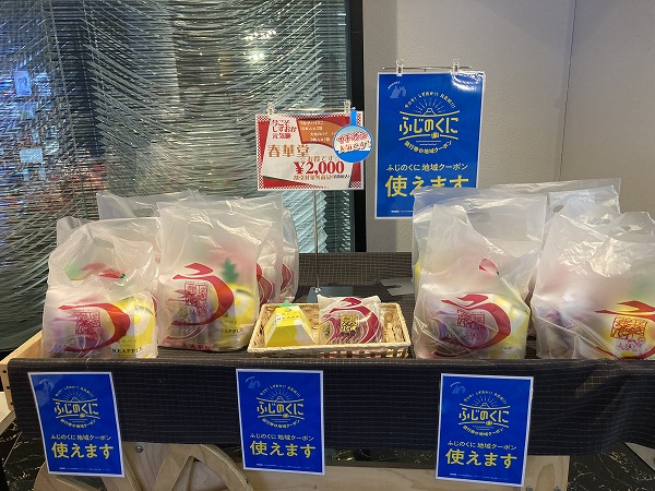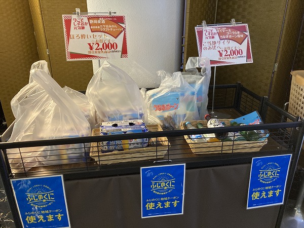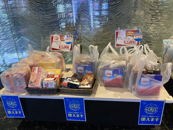 お菓子セットとか、お酒セットとか、2000円(一人分)の地域クーポンで、買えるようにしてありますよー。