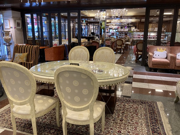 ウェルカムスイーツは、こちらのフロント内のテーブルで食べることになります。