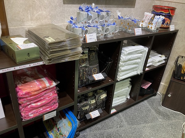 フロント横の、ショップです。オリジナルグッズが置いてあります。