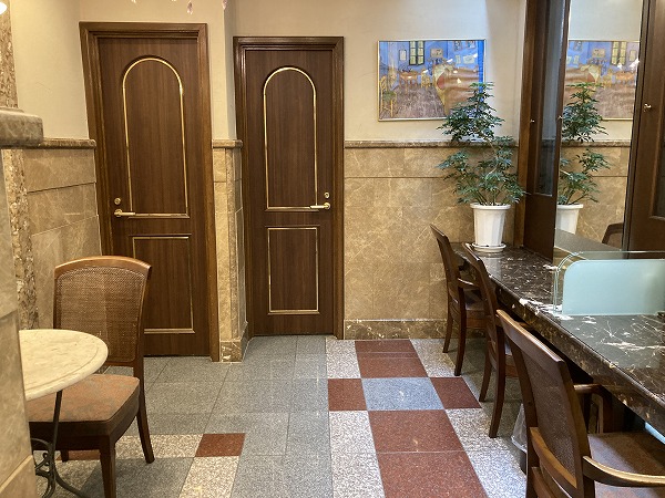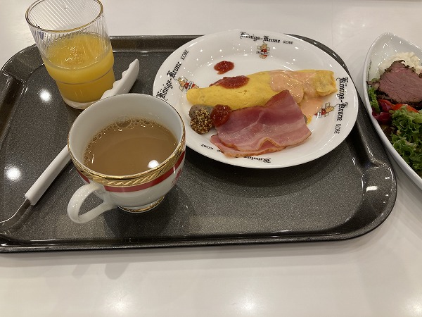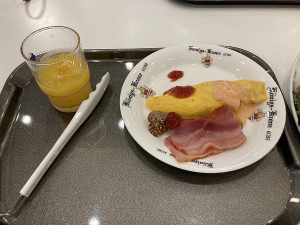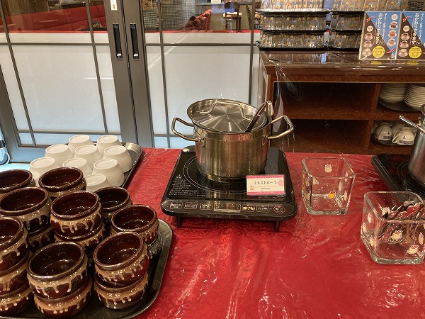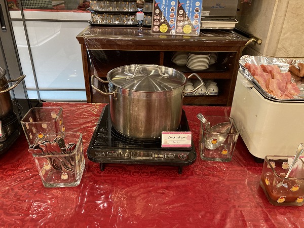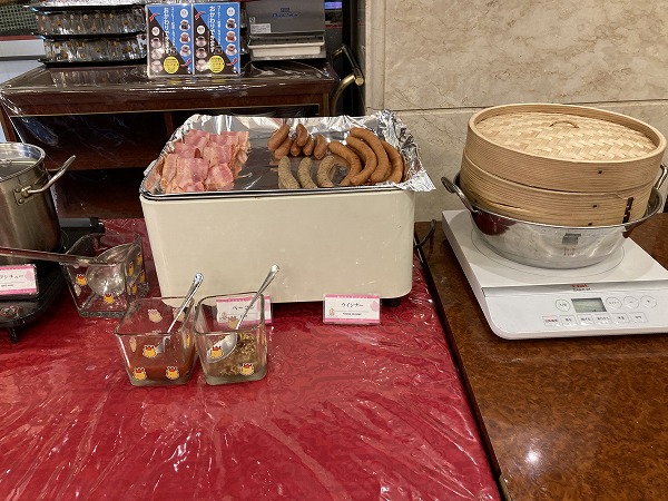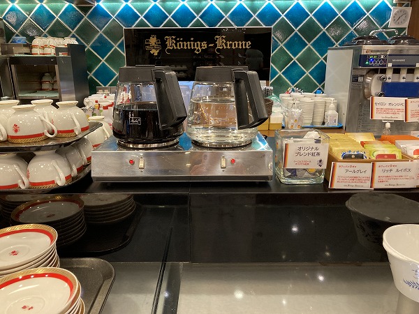 フロントでお金を払います。払っている間に、朝食ブッフェ会場の写真を撮りました。