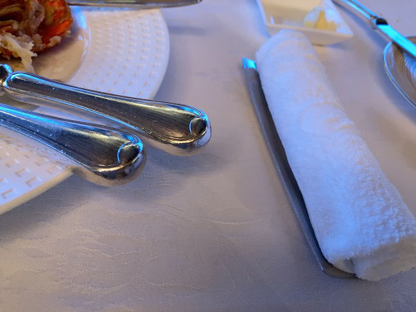 手が汚れたので、新しいおしぼりを出してくれます。