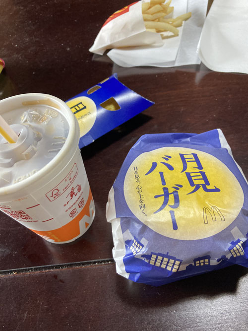 帰りに、車を走らせながら、マックのドライブスルーで、月見バーガーなどを買い、母の家で昼食です。