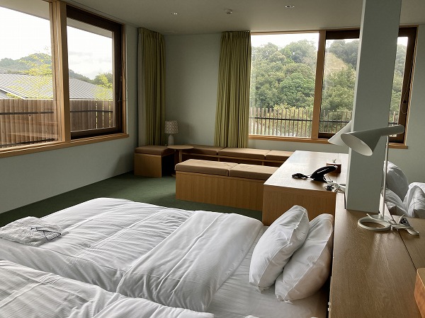 部屋の真ん中に、二つずつベッドがくっついて置かれています。