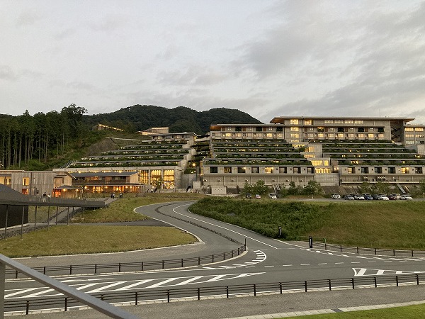 晩御飯を食べてからの、帰り道。ホテルが見えます。綺麗~~。