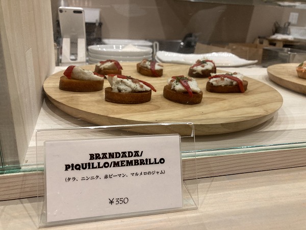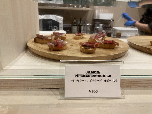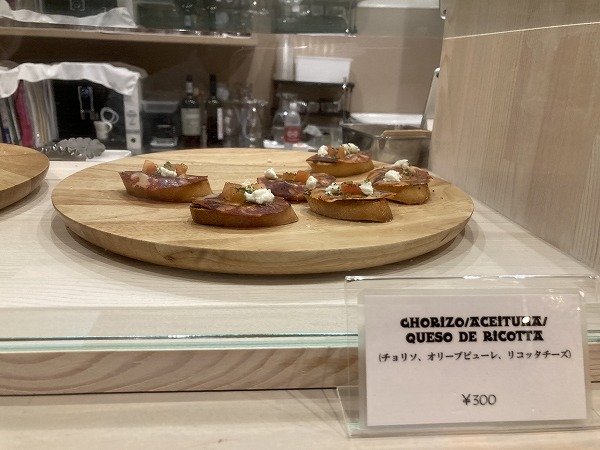 前に、夫と来て買ったピンチョスは1つ400円だったので、隣のお店が、「300円~」となっていたので、こちらに入ってみました。