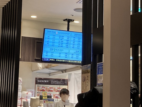 空港みたいに、電車の時刻表が表示されます。これ、めちゃいいよ。
