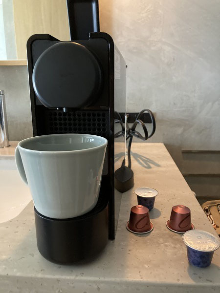 チェックアウトまで、1時間あるので、コーヒー飲もうよー。