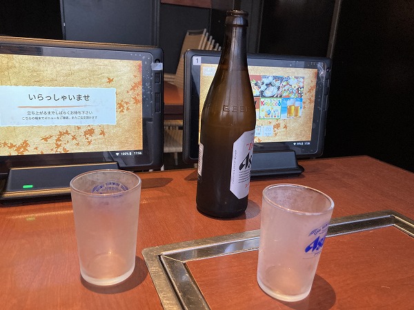 ビールは、グラスも、ちゃんと冷やしてくれてある。瓶ビール640円(税込み)