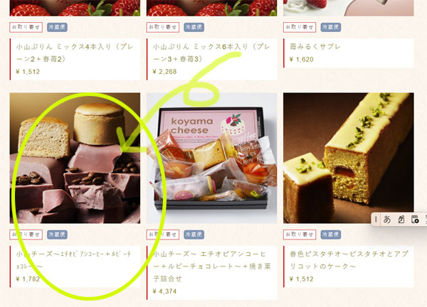 以前、一度食べた「小山チーズ エチオピアンコーヒー+ルビーチョコレート」の味が忘れられない。
