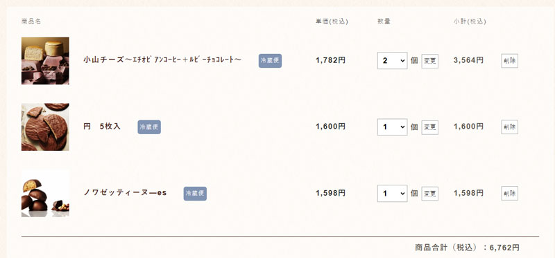今回は、小山チーズ エチオピアンコーヒー+ルビーチョコレートを2個購入。