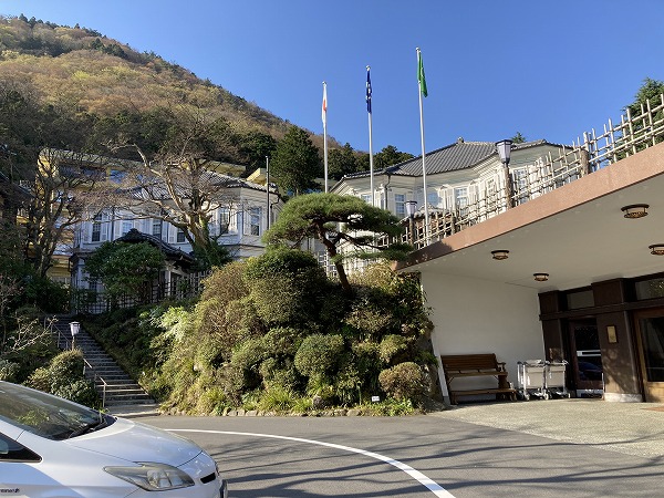 後ろを振り返って、富士屋ホテルの写真を撮る。