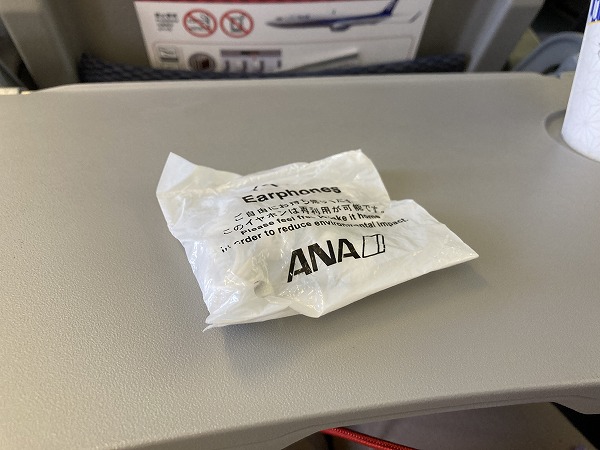 イヤホン、配っていたんだっけ。自分で「ください」って言ったんだったかな。行きの便は。