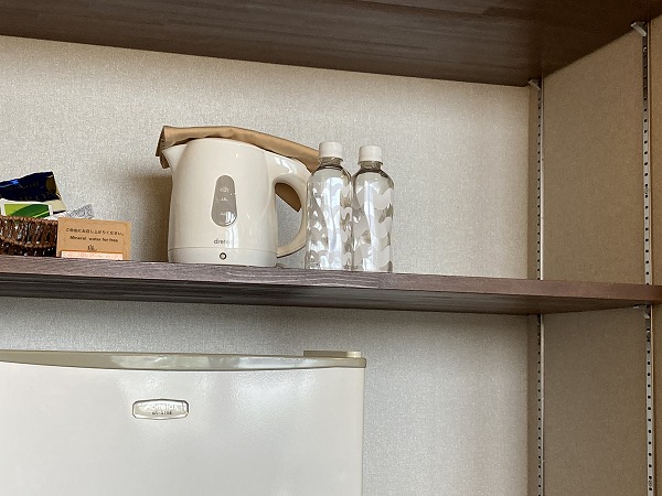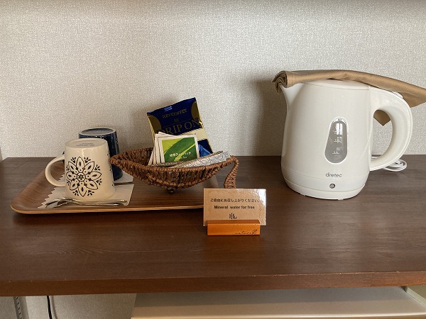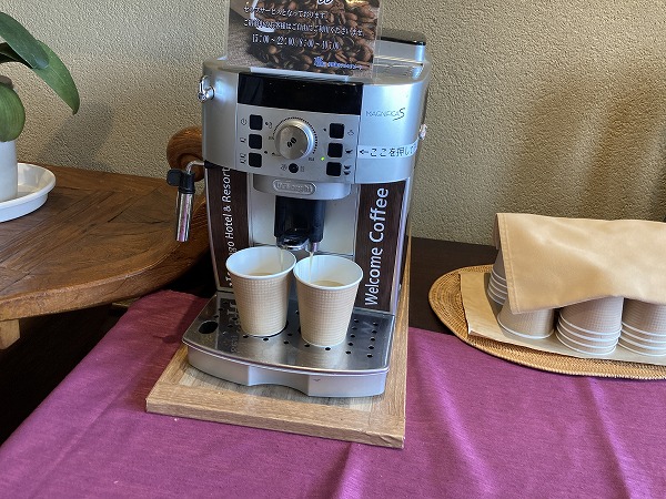 このコーヒーメーカー、カップ2つ用ボタンがありました。フロントのお姉さんに教えてもらいました。