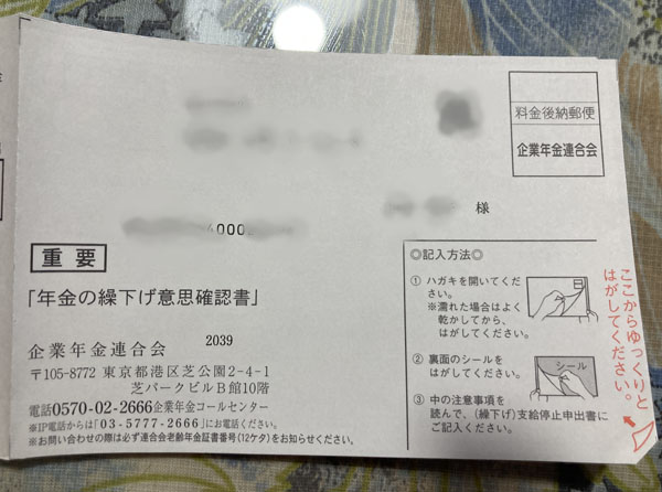 国民年金、厚生年金は、繰り下げたけれど、企業年金というものは、繰り下げできるとは思わなかったし、何も考えていなかった。