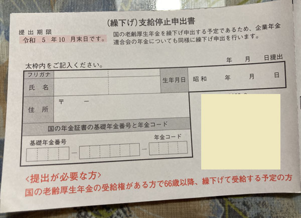 結局、この企業年金の「支給停止届出書」は、出すことにしました。