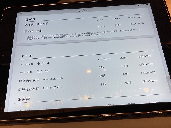 お給仕の人からは、結構、強めにコースを勧められましたが(サーブのタイミングがずれるので、コースの方が良いと)