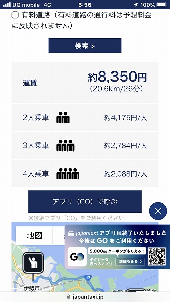 夫を待っている間に、タクシー料金を調べたら、9000円弱だったので、まー、1万円だせば帰れるか。