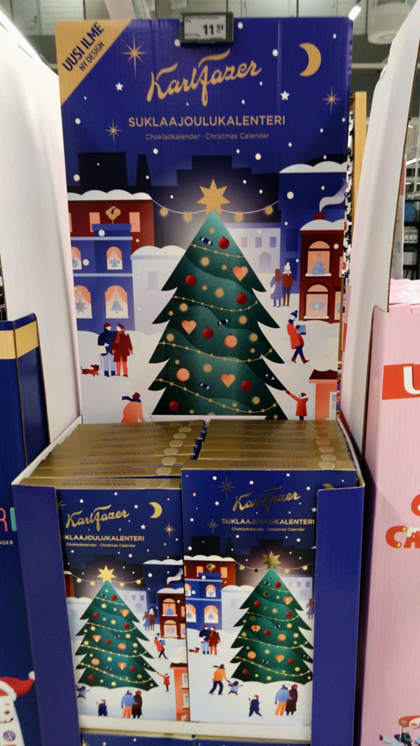 でも、長男が、私の好きなフィンランドのファッチェル(Karlfazer)のアドベントカレンダーをお土産に買ってきてくれた。