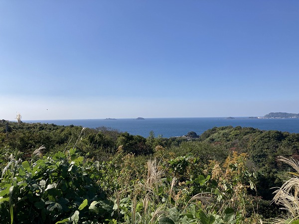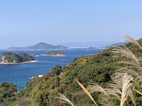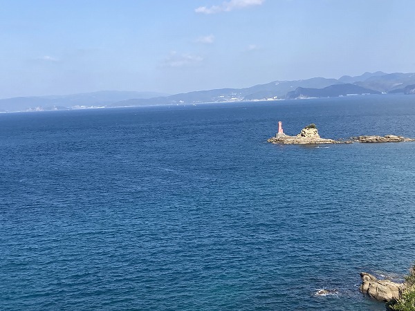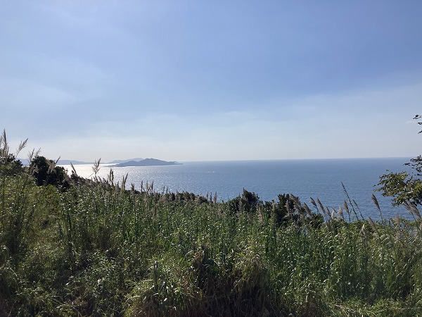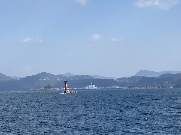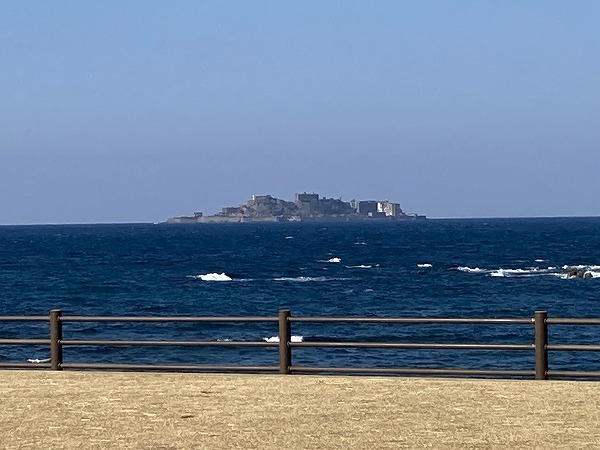 見えたんだけれど、手前の大きな島の後ろに、ちょっと見えるのが、「軍艦島」か?