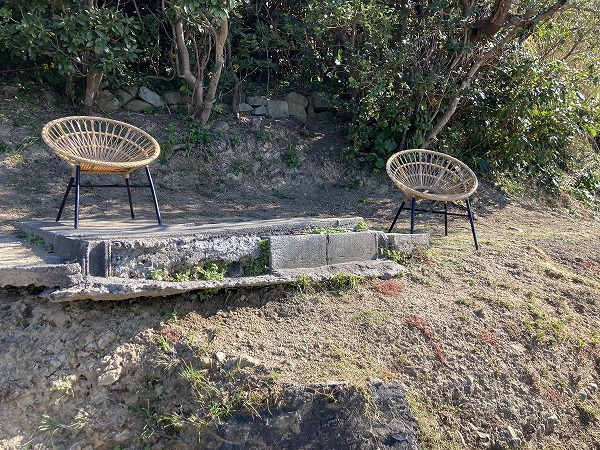 椅子が用意されていて、ここに座って、のんびり海を眺められるようにしてあるのかなー。