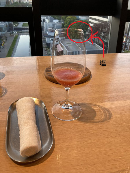そうそう、このジュース。ふちに塩が付けてあって・・・・