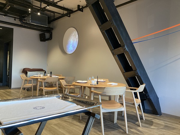 オアシス21、広いスペースに椅子やテーブルが置いてあった。