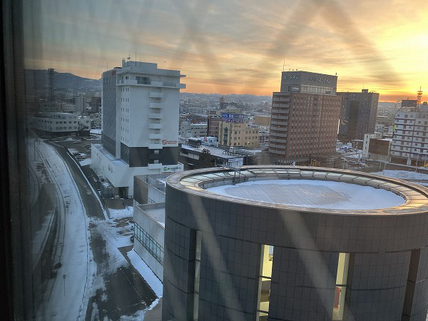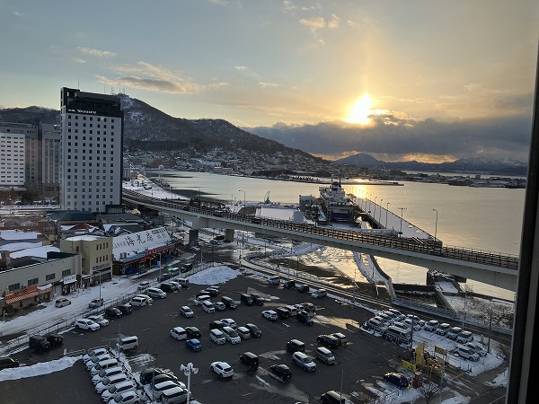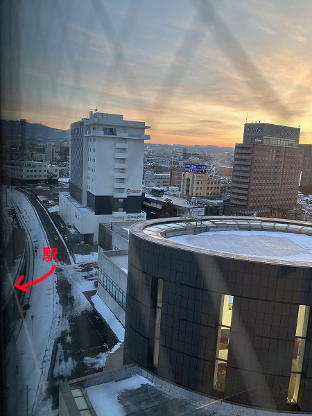 残念ながら、函館山側なので、部屋からは見れませんでしたが、高層階の駅側の部屋だったら見えるかも。