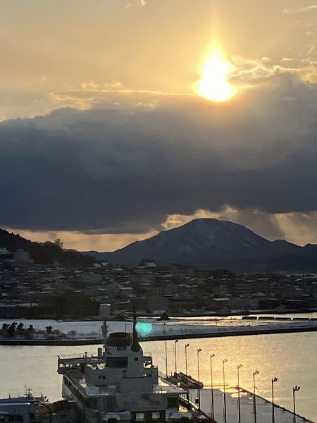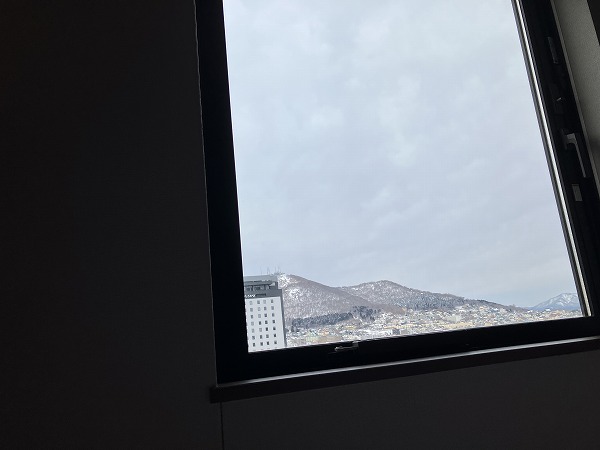 部屋からの眺めです。日の入りが右手に見えるので、南側の部屋が、函館山側ですねー。