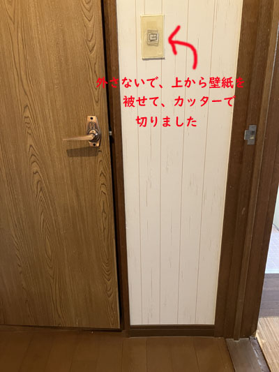 スイッチの板は、外せない(外し方がわからない)ので、貼りながらカッターでスイッチ部分を切る。という荒業。