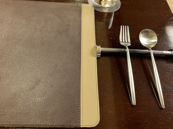 革のランチョンマットの上を、箒みたいなので、パンくずを取り除いてくれて・・・