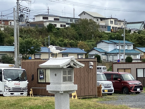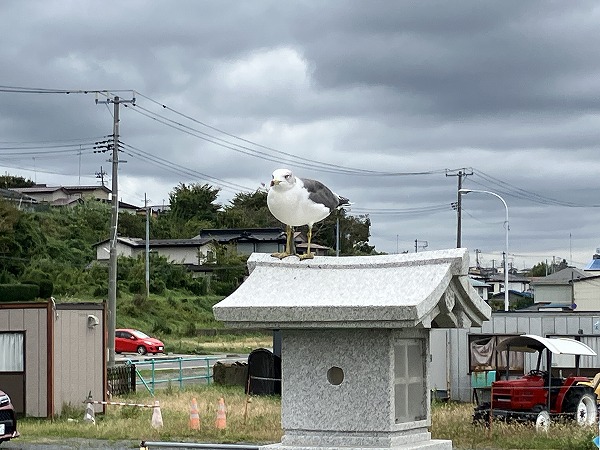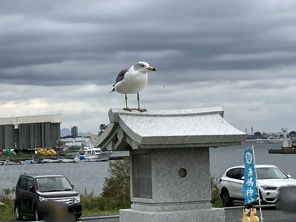 ウミネコが、いっぱいいて、有名な神社だそうですが、工事をしているせいか、ほとんど、ウミネコがいない。