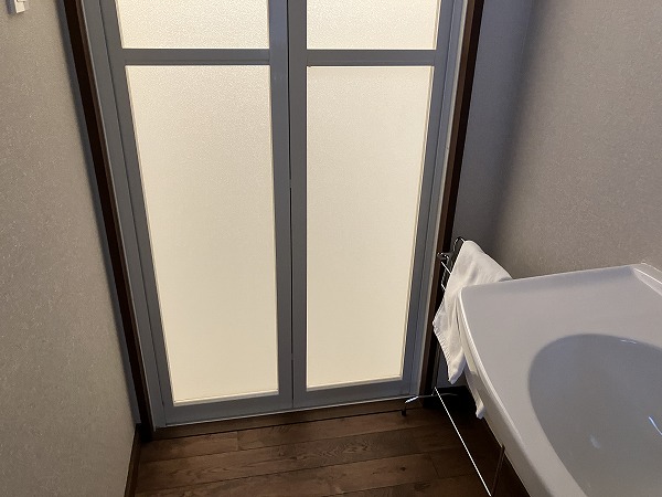 こっちの奥(窓側)に、シャワーブースがあり、洗面所がある。トイレは、入り口近く。