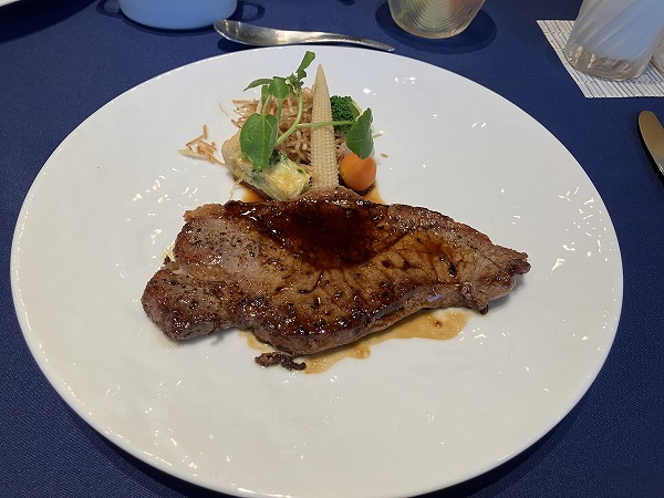 この時点では、「田原市プレミアム商品券」が使えると思っていたので、なるべくお金を使わなくては・・・・と、プラス550円で、ステーキ朝食に変更。