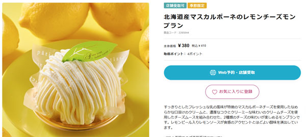 - レモンチーズモンブラン 410円→→50%オフ→→ 205円