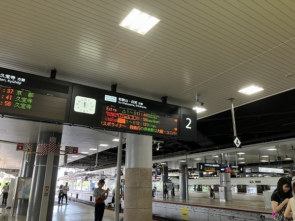2番乗り場でした。臨時なので、和歌山・白浜方面のホームですが・・・