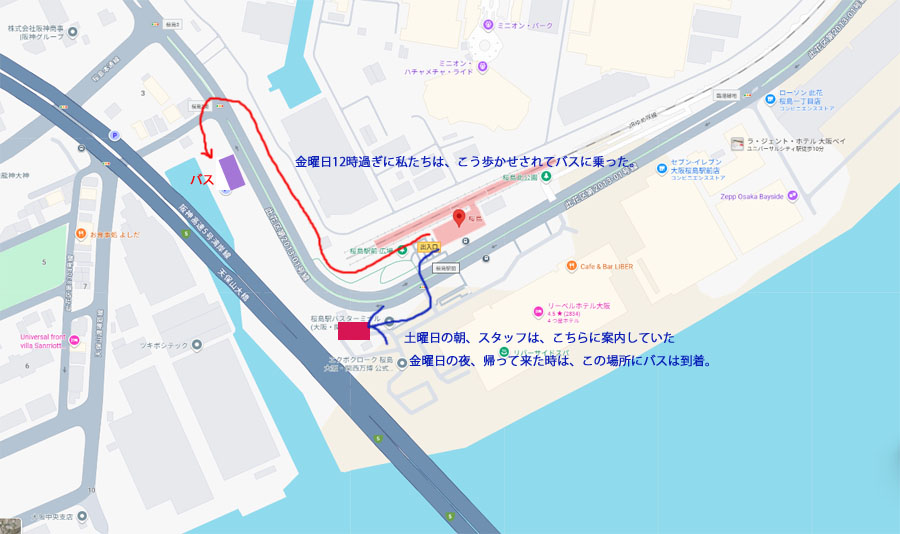 さて、桜島駅に戻り、万博シャトルバスに乗ります(西ゲート⇔桜島駅)