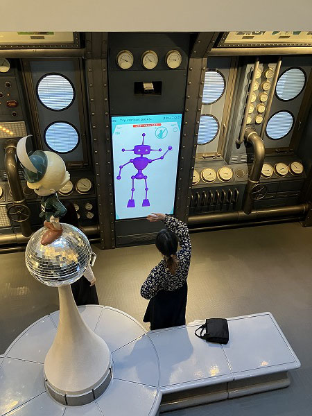 これね、目の前で、人が、動くと、同じように、ロボットの絵が動くの。