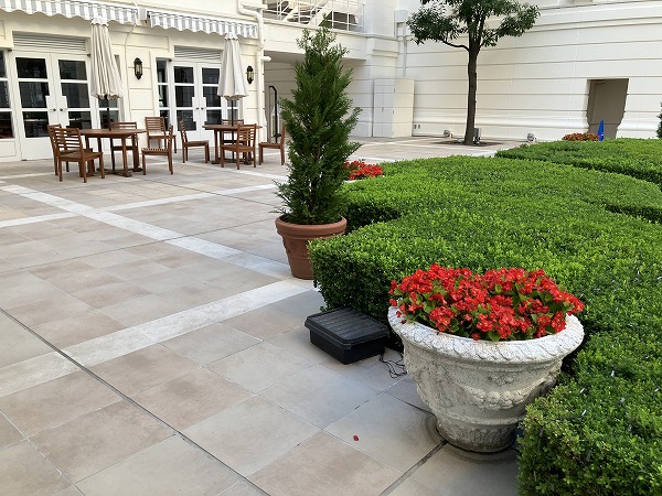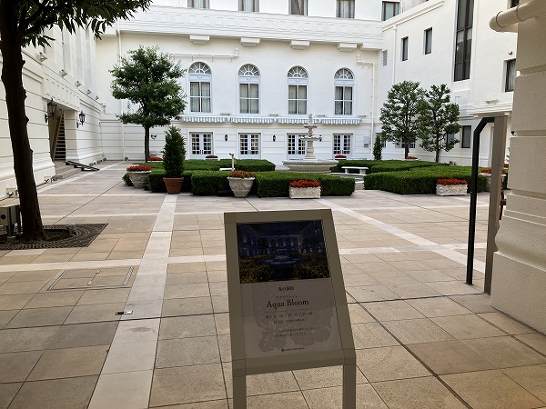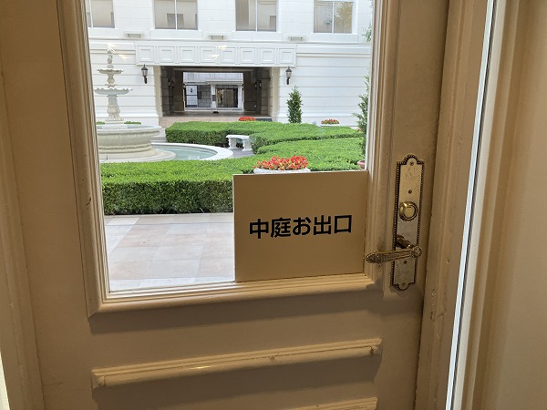 フロントにいたスタッフに「中庭ってどこにあるんですか?」と聞いて、中庭に行きます。