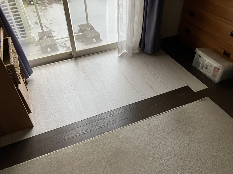 どうかなー、6畳一間を同じフロアシートで敷き詰めるのには、あと何枚いるのだろうか。