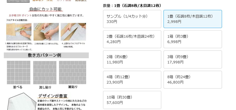 石調と木目調では、1枚のサイズが違い、私がブログで見た方は、石調でした(45.7✖4537)